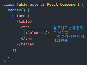 table tr안에 td만 컴포넌트로 받으려고 Colums라는 컴포넌트를 로드함 |