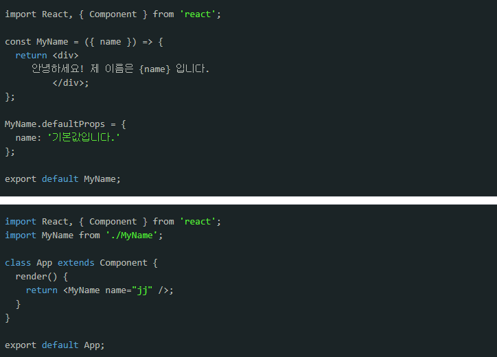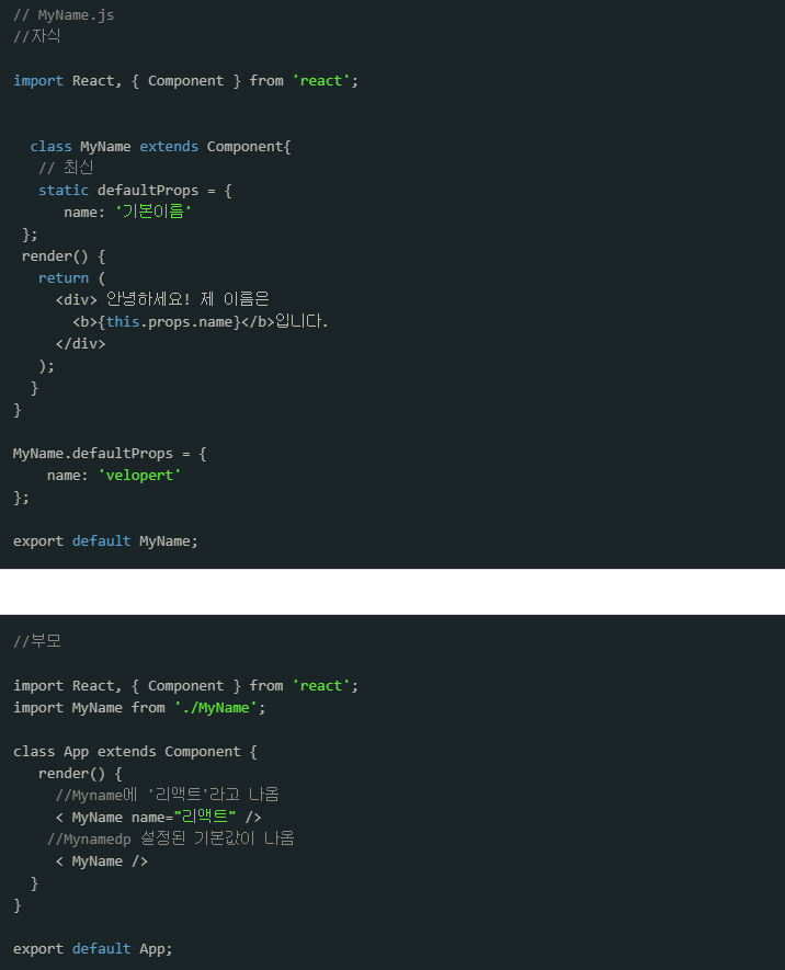 가끔 props를 빠뜨렸거나, 특정상황에서 props를 일부로 비워야할때! ( props의 기본값 : defaultProps )