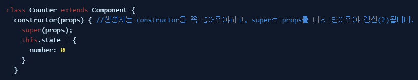 클래스 블록 안에서 할당 연산자(=)를 이용해 인스턴스 속성을 지정할 수 있는 문법을 클래스 필드(class field)라고 합니다. class Counter extends Component { Unknown macro: { number} } |