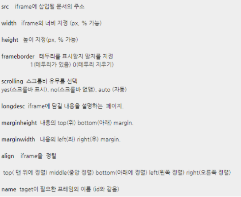 HTML5에서는 아이프레임태그 사용을 권하지 않는 비추천 태그입니다.